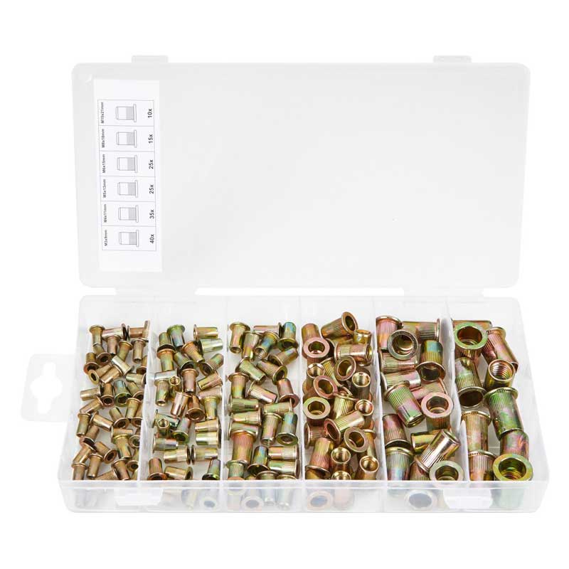 Blue Spot 150 Piece M3-M10 Nut Rivets for use with a nut riveter to place permanent threads in pre-drilled holes.