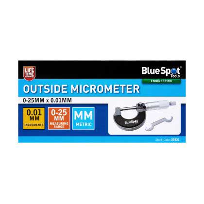 Blue Spot 0-25mm Micrometre ensures exact measurements from 0-25mm with increments of 0.01mm. For accurate and precise measuring of external dimensions in a range of applications.